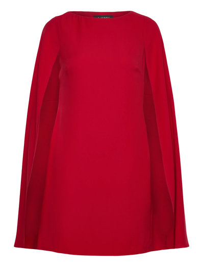 Dieses Etuikleid aus doppellagigem Georgette ist eine elegante Wahl für besondere Anlässe. Ein Wasserfall-Cape verleiht der figurbetonten Silhouette fließende Bewegung. Es verfügt über einen abgerundeten Ausschnitt und einen verdeckten Reißverschluss an der linken Seitennaht.