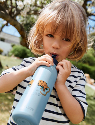 Premium insulated water bottle in 80% recycled stainless steel of 500 ml.Keeps liquids cold for up to 12 hours and hot for up to 6 hoursLeakproof when the built-in pop-up spout is closedLoop handle for carrying on the goIncludes a cleaning brush