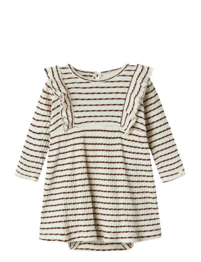 Dieses Bodykleid mit Rüschen und langen Ärmeln bietet ein angenehmes Tragegefühl und Bewegungsfreiheit. Der Jersey-Stoff ist leicht und dehnbar, wodurch es sich ideal für jede Jahreszeit eignet. Es verfügt außerdem über einen O-Ausschnitt, einen Knopf- und Schlaufenverschluss sowie einen Druckknopfverschluss.