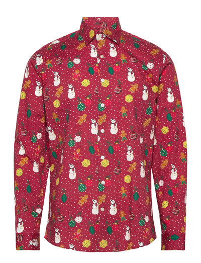 Festliche Stimmung trifft auf klassischen Stil in diesem langärmeligen Hemd, das mit einem Allover-Print aus weihnachtlichen Symbolen geschmückt ist. Das Button-Down-Design bietet einen smart-casual Look, perfekt für saisonale Zusammenkünfte.