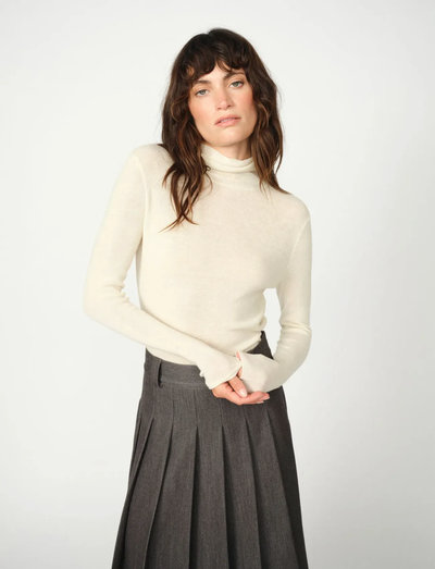 A pillow-soft knit crafted from pure recycled wool, designed in a regular fit with a comfortable rollneck. It’s a perfect layering piece suitable for cold autumn days, and we like to wear it under a dress for a casual outfit.
