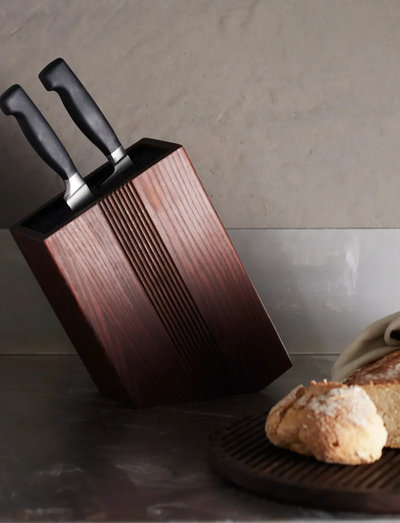 The knife block from the Yami series is made of carbonized ash wood, which gives the dark color that is iconic for the series. Designed with subtle details and elegant grooves, it creates a stylish and refined contrast to the dark wood.