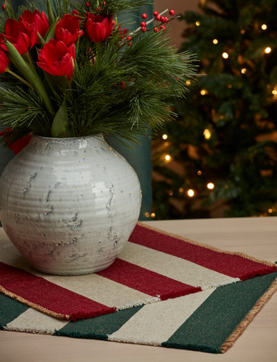 Beautiful place mat in lovely rustic jute, with its modern wide stripes it really takes its toll and gives a lovely festive impression when setting the table.