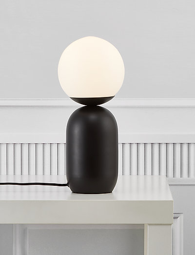 The organic shape result in a lovely table lamp with an elegant design. The masculine base in matte metal is a nice contrast to the feminine white opal glass dome, which contributes to visual volume and a soft glare free light.