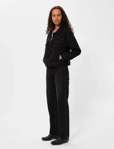 Regular fit denim jacket equipped with two front welt pockets and two chest pockets in the ideal black wash. Crafted from splendid black denim with a coarse texture, this denim jacket has been delicately washed to achieve a subdued black hue, accentuating the texture slightly and imbuing it with depth and intricate detailing.