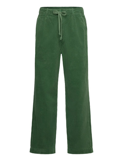 Diese Bundfaltenhose ist aus breit geripptem Cord gefertigt, was für eine markante Textur sorgt. Sie ist in einer entspannten Passform gehalten und verfügt über einen elastischen Kordelzugbund für verstellbaren Komfort. Das stückgefärbte Material sorgt für eine dezente, tonale Variation. Abgerundet wird das Design durch Gürtelschlaufen, schräge Vordertaschen und Paspeltaschen hinten.