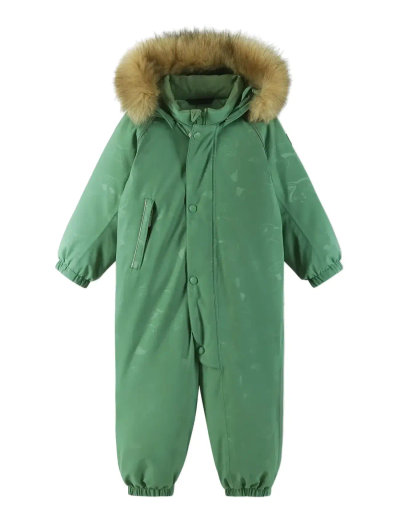 Our waterproof ReimaTec toddlers' down snowsuit has lots of fab features: All its seams are sealed waterproof and it has a water- and dirt-repellent surface. The insulation is made up of RDS certified 60% down and 40% feathers and the seat has extra wadding for even more warmth. The smooth lining makes slipping it on wriggly little ones easier, and the detachable hood is safe because it comes off if caught on something. A small zipper pocket keeps tiny treasures safe. Durable silicone foot loops keep the leg hems in place, protecting little ankles from moisture and the cold. This tumble-dryer-friendly winter all-in-one is a great choice for crawling in the countryside or strolling in the city!
