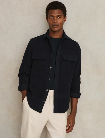 Dieses Overshirt aus weichem Moleskin-Baumwollstoff bietet sowohl ein angenehmes Tragegefühl als auch einen stilvollen Look. Das Design verfügt über praktische Brustklappentaschen, Knopfmanschetten und eine Knopfleiste vorne, was es zu einem vielseitigen Kleidungsstück macht, das solo oder als zusätzliche Schicht getragen werden kann.