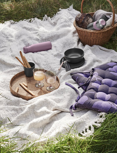 Robust and stylish design and lavender in full bloom. The large 65-cl Grand Cru Outdoor thermos flask with a cup on top is a lovely thermos in a pretty lavender colour. The combination of steel and lavender-coloured silicone not looks elegant, but also keeps your drink warm. A practical push button keeps the thermos flask tightly sealed and can be opened with one hand – perfect for taking to work, school or outings with friends and family. Grand Cru Outdoor is for those who appreciate design and practicality in one. The series is designed both for hectic days and days spent outdoors in the peace and quiet.