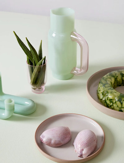 Pitcher – An Elegant and Durable Jug in Borosilicate Glass The Pitcher is a stylish and practical jug made from borosilicate glass, offering both elegance and long-lasting durability. This material is renowned for its heat resistance and resilience to temperature changes, making the pitcher ideal for serving both cold and hot beverages all year round. Whether you’re serving chilled water or warm mulled wine, the Pitcher can handle it all. Lightweight Jug with Great Capacity With a 1.2-liter capacity and a modern design, the Pitcher is not only functional but also a beautiful addition to your table. Use it to serve iced tea, juice, water with ice, or as an elegant water jug for your dining table. The jug is scratch-resistant, lightweight, and easy to clean, making it perfect for everyday use. The Pitcher comes in three stunning color combinations: blue/milky amber, milky jade/milky rose, og rose/milky Each can be paired with our other products from the Clay and Glassware collections to create a cohesive look. This versatile and durable jug is the perfect addition to any home, combining functionality and aesthetics in one design. Complete your table setting with the Pitcher – a jug that’s both practical and beautiful.