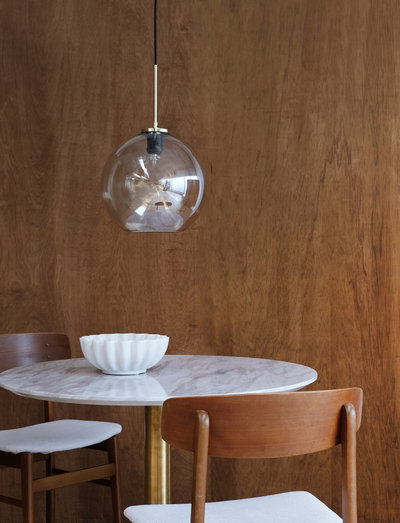 The LOOP series consists of these beautiful glass domes. The series can be used in clusters, over the table or in the open space. The suspension is simple and with fabric cord.