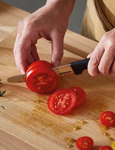 VegetablesFiskars Hard Edge knives are designed to make everyday life easier in the kitchen. The knife blades are made of thick stainless steel with revolutionary LZR -EDGE ™ technology that causes the leaves to stay sharp 4 times longer than regular knives. The handles have ergonomic design with a unique 3D pattern to give a perfect grip.