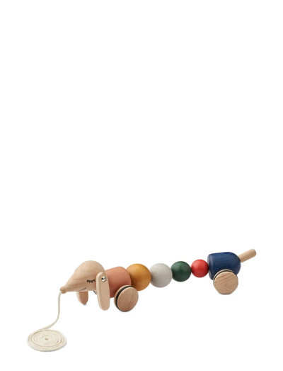 Meet BARTHES, the sweet little Daschund dog crafted from solid Beechwood that excites children with its playful wobbly movements when taken for a walk. A timeless toy that adds charm to its surroundings with its colourful and decorative yet classic design.