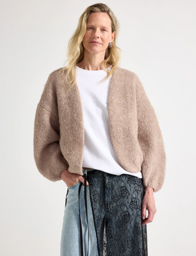 An open-front design defines this soft, knitted cardigan, making it an effortless layering piece. The long sleeves add to its cozy feel, perfect for cooler days.