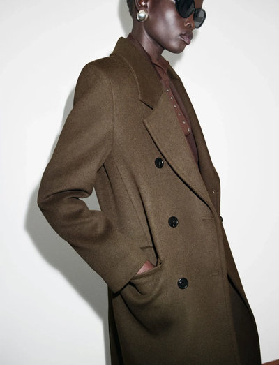 Crafted from a wool blend, this coat features a straight design and a V-neck lapel collar. It also has long sleeves with buttoned cuffs, two front flap pockets, a double-button fastening, and inner lining. The item is also available in Plus sizes.