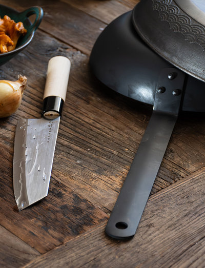 Satake Houcho (Knife in Japanese) has an incredibly good price considering what a nice knife you actually buy. Discreet design, a razor-sharp edge, is feather-light and will survive for generations if you take care of them. The focus has been on developing a really high-quality blade with a simple, but functional handle. Houcho is Satake's best-selling knife series. A bunka is (like the Santoku & Hakata) a Japanese all-round knife/chef's knife, but there are some clear details that differentiate the different models. The blade shape of the bunk has a so-called Kaku-tip or K-tip. It is a sharply cut nose that makes the profile harder and straighter in its appearance. The reason for this shape in comparison to the softly rounded santokun is that a bowl should also be able to penetrate certain raw materials such as tendons more easily or that the harder designed tip should be able to be used for really fiddly precision work. Material: Hi Carbon Steel Blade length: 17 cm Sharpening angle 15 degrees Magnolia wood Handle Sharpened with stone or ceramic ...