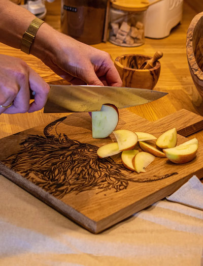 Immerse your dining experience in countryside allure with our Medium Highland Cow Oak Serving Paddle. Made from sustainable oak and expertly engraved with a beautifully detailed Highland Cow, this versatile paddle is perfect for serving a range of dishes with rustic charm. Practical, thoughtful, and brimming with personality, it's a standout gift for enthusiastic hosts and lovers of the countryside.