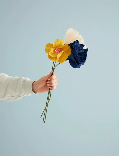 The paper flower windflower is one of our smaller flowers. Here it is in a lovely ochre color with a bud in pink. The paper flower is a handmade crepe flower designed in collaboration with Kristina Sørensen from Labdecor.