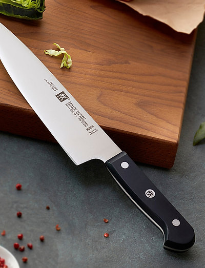 This set of 3 knives from the zwilling gourmet series includes a paring knife, a slicing knife and a chef's knife. the blade of each knife is icehardened and therefore extremely robust and corrosionresistant. in addition, these knives are easy to use due to their low weight and ergonomic handles.