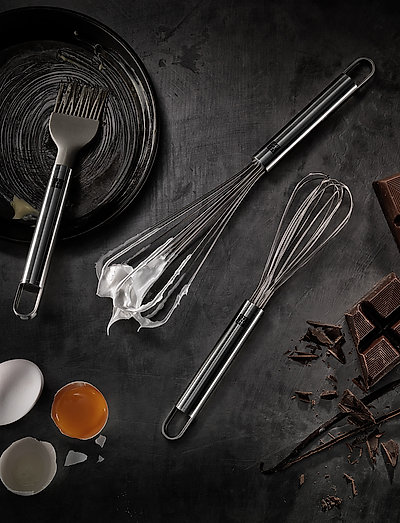 What would a juicy joint be without a sauce to go with it? or what about a delicious cake without whipped cream? precisely. that’s why a whisk is an essential cooking gadget in every kitchen. the large zwilling pro series whisk is the ideal kitchen gadget for anything that requires a particularly airy consistency. it is easy to handle thanks to the ergonomically designed, satinfinish handle. the curved handle end doesn’t press into the palm of your hand, allowing you to effortlessly work longer. the kitchen gadget is made of lowmaintenance stainless steel and boasts an unusual design: the wires are especially flexible and overlap to form a drop shape. this ensures improved results and the whisk even stands vertically. not only that, the special design is especially attractive and makes this whisk wonderfully decorative. the entire pro series is designed by internationally known designers matteo thun and antonio rodriguez. they have created a minimalistic look that’s modern, timeless and almost indestructible, thanks to excellent workmanship using the best materials.