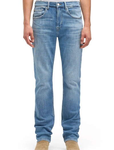 Regular fit - Lige pasform fra hofte til lår og sidder løsere ved anklen end en slim fit.