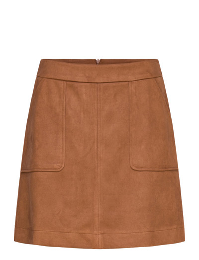 Denne A-formede nederdel er fremstillet i imiteret ruskind og har et praktisk design med to store frontlommer. En skjult lynlås sikrer en glat lukning bagpå.