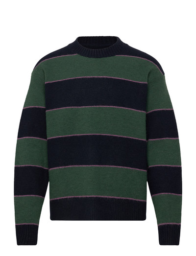 Denne sweater har en klassisk rund hals og tilbyder både komfort og stil. De vandrette striber tilføjer et visuelt interessant element, hvilket gør den til en alsidig tilføjelse til enhver garderobe.