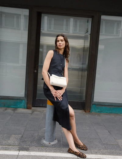 Denne skuldertaske er fremstillet i blødt, tekstureret læder og har en smart bæltdetalje foran. Den har to rum med lynlås og praktiske lommer, der kombinerer elegance og funktionalitet til hverdagsbrug. En mulepose og en garanti kortholder i læder, der også kan bruges som kortholder, medfølger.