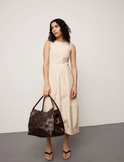 Håndflettet læder giver denne skuldertaske et karakteristisk udseende. Den er designet til hverdagsbrug og har et rummeligt rum med lynlås, en aftagelig rem for alsidige bæremuligheder og praktiske inderlommer. En mulepose og en kortholder i læder medfølger.