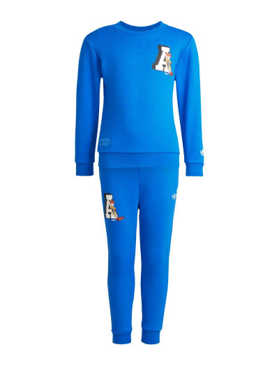 Your little one is always on the go. Let them run, jump and play in this kids' crew set from adidas and Disney. Soft French terry keeps them cosy as they explore. Playful Disney graphics add a fun finishing touch. • Regular fit • Crewneck • 70% cotton, 30% polyester (recycled)