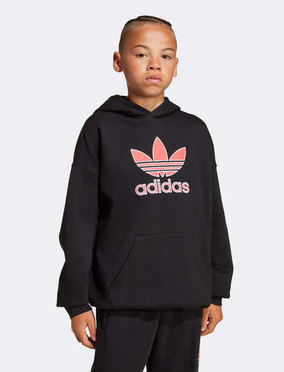 Et markant Trefoil-logo giver denne løstsiddende hættetrøje et retro-inspireret look. Den blander 90'er-vibes med et moderne design og er fremstillet af en behagelig bomuldsblanding. Strikkonstruktionen tilføjer et hyggeligt præg, hvilket gør den perfekt til hverdagsbrug.