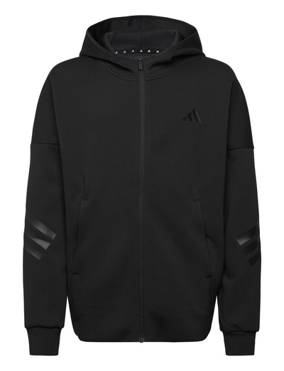 Denne hoodie med lynlås er perfekt til lagvis påklædning eller til at bære alene og giver alsidig komfort. Designet med fuld lynlås gør den nem at tage af og på, mens hætten giver ekstra dækning, når det er nødvendigt. De karakteristiske 3 striber på ærmerne tilføjer et sporty touch.