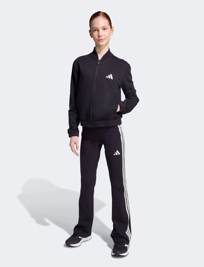 Komfort og sporty stil kombineres i dette træningssæt. Det er fremstillet i blødt materiale og er ideelt til afslapning derhjemme eller til at tage ud. Jakken har en opretstående krave og lommer, mens bukserne har de klassiske 3-striber. Metalliske logoer tilføjer et strejf af glamour.