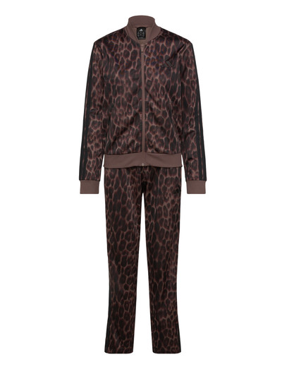 Dette træningssæt har et markant dyreprint og giver et stilfuldt udtryk til træning eller fritid. Sættet indeholder en jakke med fuld lynlås og matchende bukser, begge designet til komfort og fleksibilitet. De karakteristiske tre striber tilføjer et sporty touch.