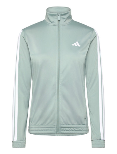 Denne sporty træningsjakke har det ikoniske tre-stribede design langs ærmerne. En fuld lynlås foran og en opretstående krave giver alsidig dækning, mens det lette stof sikrer behagelig brug under træning eller afslappede udflugter.