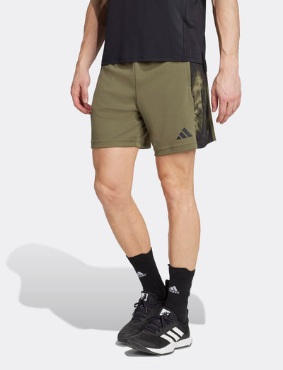 Træning/gymDisse træningsshorts har camo-print sidepaneler, der giver et iøjnefaldende og trendy look. Det lette piquéstof giver den perfekte balance mellem komfort og dækning under træningen, mens CLIMACOOL-teknologien transporterer sved væk og sikrer en kølig, tør og distraheringsfri præstation. Hurtigtørrende fibre giver en frisk fornemmelse. En almindelig pasform fuldender designet.
