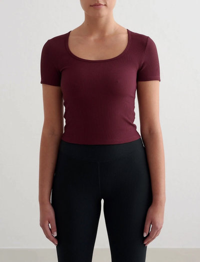 Denne kortærmede crop top har en ribbet tekstur og en flatterende silhuet. Den er designet til performance og giver en behagelig pasform, der bevæger sig med dig under enhver aktivitet.