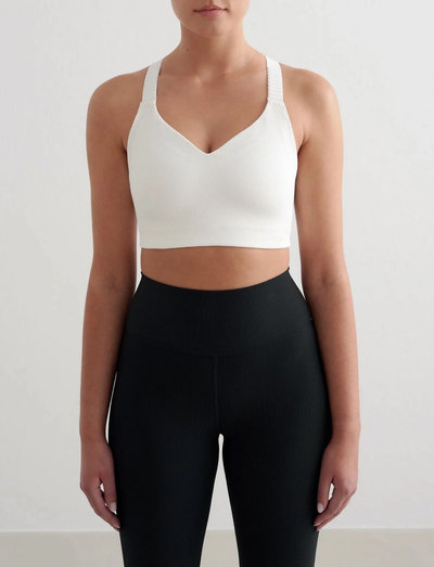 Denne støtte-bh har et ribbet design, der giver både stil og funktionalitet. De krydsende stropper på ryggen giver ikke kun støtte, men tilføjer også et moderigtigt touch. Perfekt til træning eller hverdagsbrug.