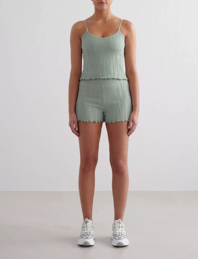 Disse AIM'N Tulip Shorts er komfortable og stilfulde. De har en ribbet struktur og en flæset kant. Shortsene har en afslappet pasform, perfekt til afslappet brug.