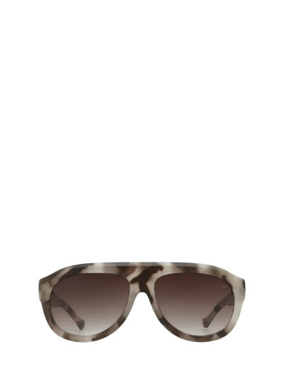 Disse solbriller i pilotstil har en levende, skulpturel ramme, der nyfortolker en klassisk silhuet. Den overdimensionerede form og den rige acetatfarve skaber et iøjnefaldende tilbehør, perfekt til solrige dage og selvsikker brug.