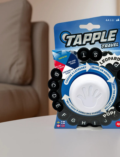 Rejseversionen af det prisvindende, hurtige ordspil, der giver familie og venner et rigtigt adrenalinsus! Udfordr hinanden i et hurtigt spil, hvor hvert sekund tæller. Denne letlærte version indeholder et Tapple-hjul og kategorikort - perfekt til at tage med på farten. Vælg en kategori, sig et passende ord, tryk på det første bogstav, og tryk på timeren i midten. Tænk hurtigt - tiden tikker! Enhver, der ikke har tid til at svare, er ude af runden.