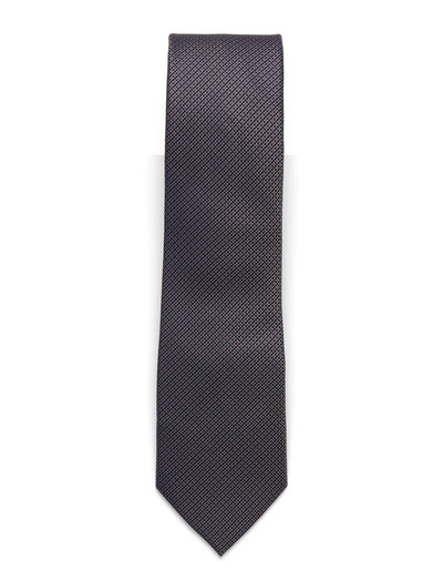 Dette sæt er en raffineret kombination til den kræsne herre og består af et vævet slips og et matchende lommetørklæde. Slipset har et diskret mikromønster, mens lommetørklædet har et klassisk paisley-design med en enkel kant. Begge dele er fremstillet af ren silke, hvilket giver en luksuriøs fornemmelse.