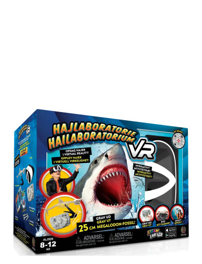 Gør dig klar til at dykke ned og opleve hajernes fascinerende verden som aldrig før. Lær om videnskaben bag hajerne, fra forskellige arter til jagtmønstre og adfærd, og forstå hvad der gør dem til et af naturens ultimative rovdyr. Begynd med at lære om hajer i den medfølgende 40-siders bog, og grav derefter dit eget megalodon-fossil frem med de medfølgende graveredskaber, før du lader dig føre ind i virtual reality og ser rigtige hajer i aktion.