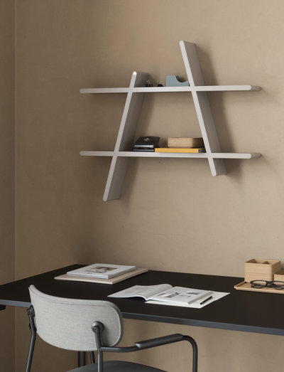A-Shelf kan desuden monteres på væggen i forskellige retninger, hvilket skaber nytænkning og kreativitet i indretningen. Ved at kombinere flere A-Shelf hylder skabes en personlig og unik væg med plads til opbevaring og udsmykning. A-Shelf er desuden lavet med nøglehulsbeslag på bagsiden, så den hænger stabilt og skruen ikke kan ses.