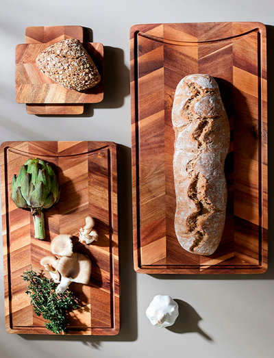 ARC serien er lavet af FSC certificeret akacietræ i et elegant sildebensmønster. Det smukke mønster giver et enestående farvespil, hvor man kan se de forskellige årer og mønstre i træet. Det naturlige og smukke mønster er med til at skabe et unikt bræt, der giver glød og varme til din borddækning.