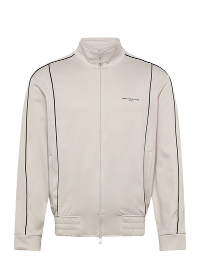 En strømlinet silhuet definerer denne jakke med lynlås, hvilket gør den til et alsidigt lag-på-lag stykke. Kontrast piping tilføjer en subtil visuel interesse, mens den ribbede kant og manchetter giver en tætsiddende pasform.