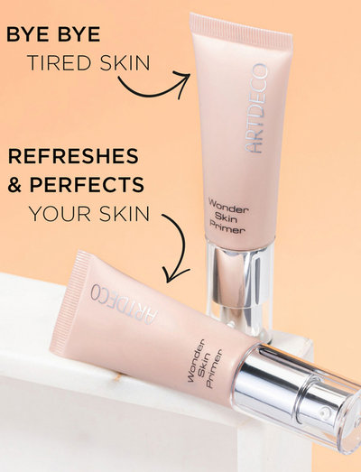 Otte timers søvn i en tube – Wonder Skin Primer fugter, genopliver og opfrisker træt hud. Den ultralette formel indeholder 80 % vand, som beroliger huden, mens fine partikler har en udglattende effekt. Primeren indeholder også indkapslede pigmenter, som giver let dækning og virker udjævnende. Kan bruges alene eller under makeup for at give den længere holdbarhed.