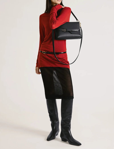 Denne skuldertaske er defineret af et signaturspænde, der også fungerer som en sikker og stilfuld lukning. Det elegante design løfter ubesværet ethvert look, hvilket gør den til en alsidig tilføjelse til din garderobe.