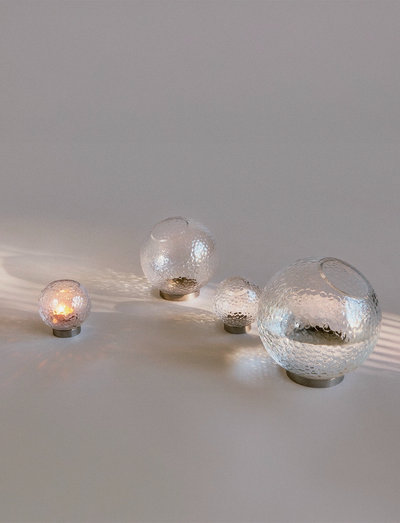 GLOBE BUBBLES gentænker AYTM’s ikoniske silhuet med et friskt perspektiv. Skabt i delikat glas og balanceret på en slank ring i rustfrit stål, udforsker designet kontrastens skønhed – hvor blødhed møder styrke, og lethed finder balance i struktur. Som en forlængelse af kollektionens charme byder GLOBE BUBBLES fyrfadsstagen på samme lette udtryk og raffinerede overflade i en mindre,