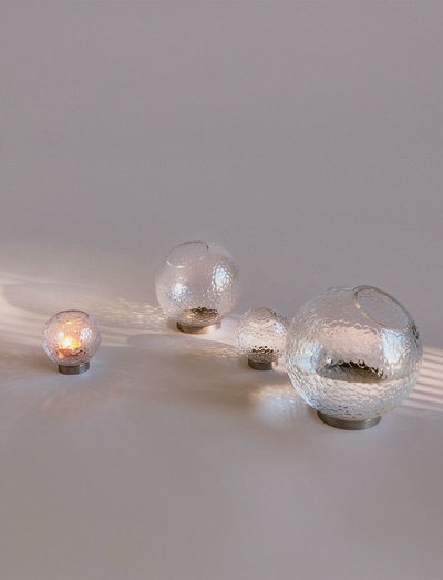 Med GLOBE BUBBLES får den velkendte silhuet fra AYTM-universet en ny dimension. Udført i delikat glas og hvilende på en elegant ring i rustfrit stål, hylder denne fortolkning kontraster - blød og stærk, let og jordnær. GLOBE BUBBLES fås i forskellige størrelser og i og i enten sort eller klart glas og tilfører skulpturel elegance til ethvert rum. Den transparente form fanger og reflekterer omgivelser
